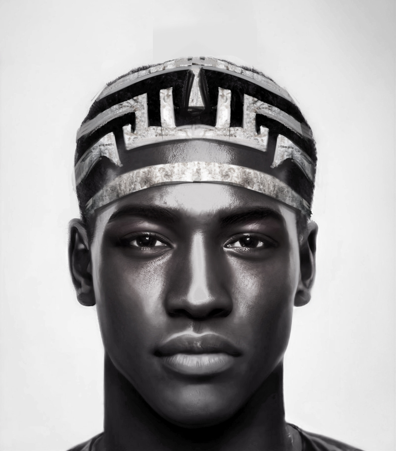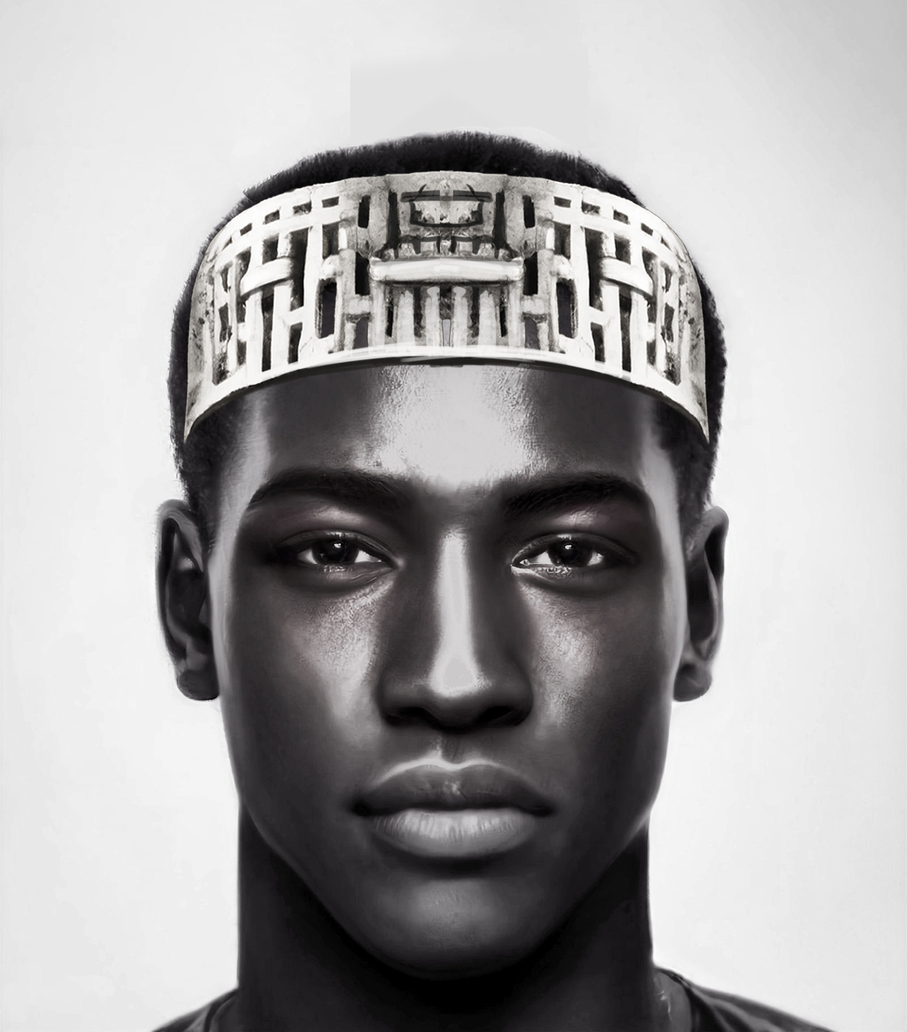 Graphic Head pieces created for the COSTUME DEPARTMENT of Jeymes Samuel's latest feature. The headdress takes inspiration from Aramaic and African adornment. Check back for more pictures