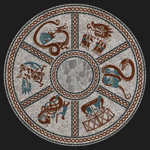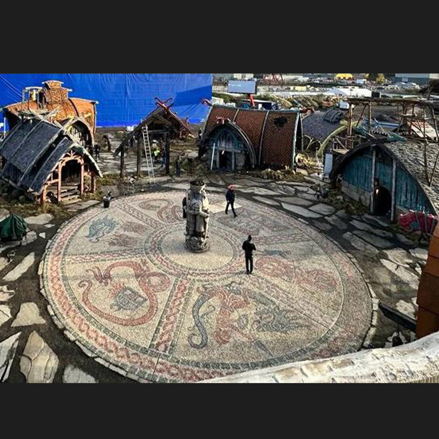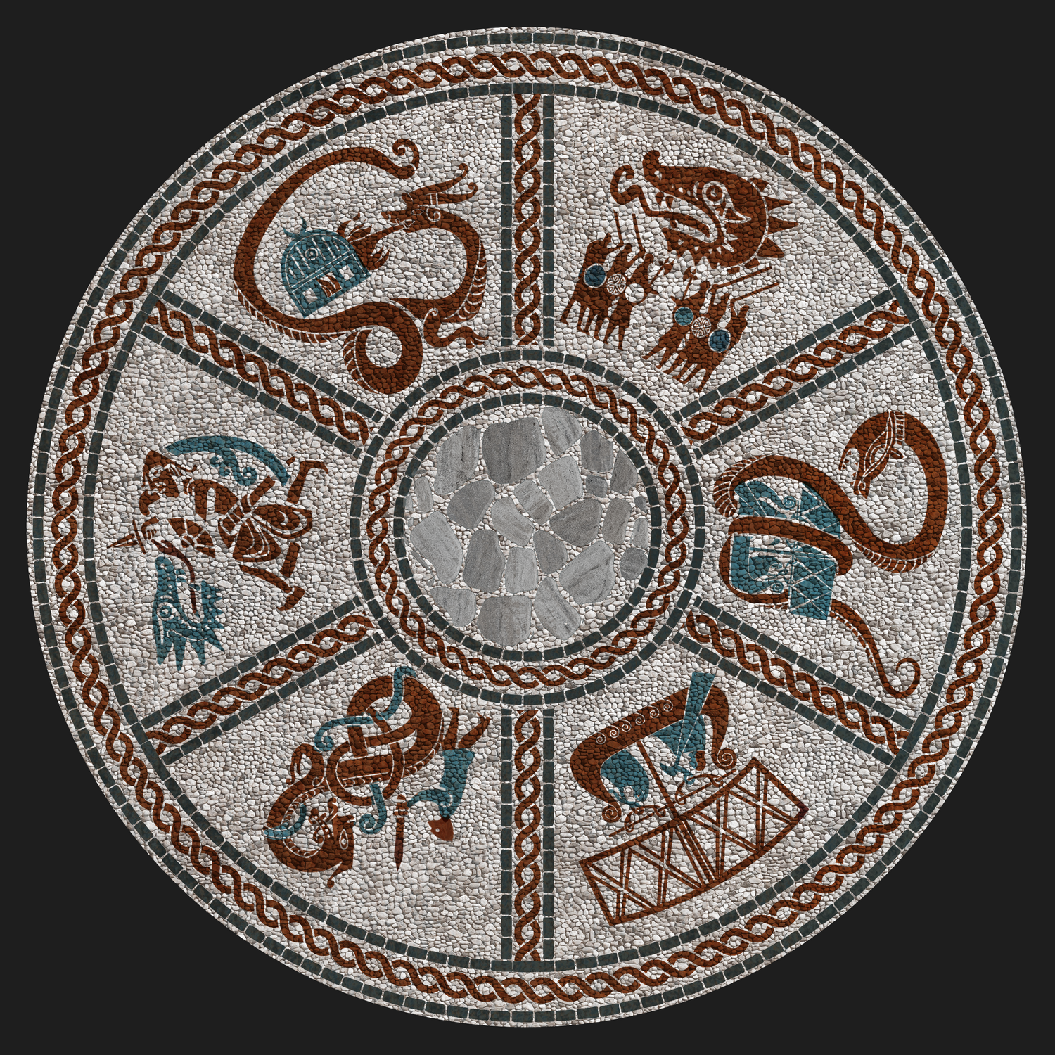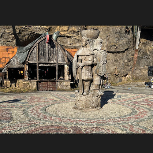 "THE PEBBLE MURAL" takes its design cues from Viking myths and legends, specifically illustrating the destructive nature of dragons. A key element we strived to retain is the whimsical illustrative aesthetic, akin to that of original animated films. "THE MONOLITH," a brainchild of our designer Dominic Watkins, pays homage to the founding fathers of Berk. Consequently, we have three "Main Forefathers," each symbolizing one of the tribes that currently inhabit Berk Island.