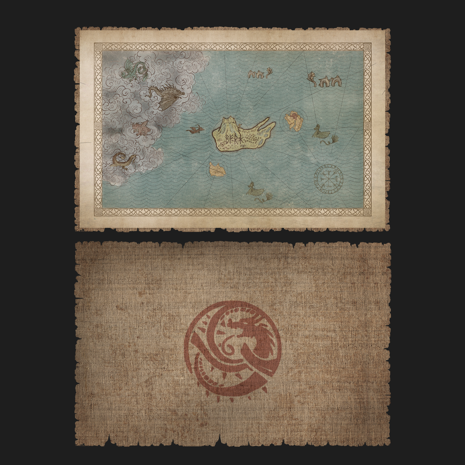 BELOW RIGHT: Hero Map based off of the animated movie which shows the dragons den obscured by clouds.