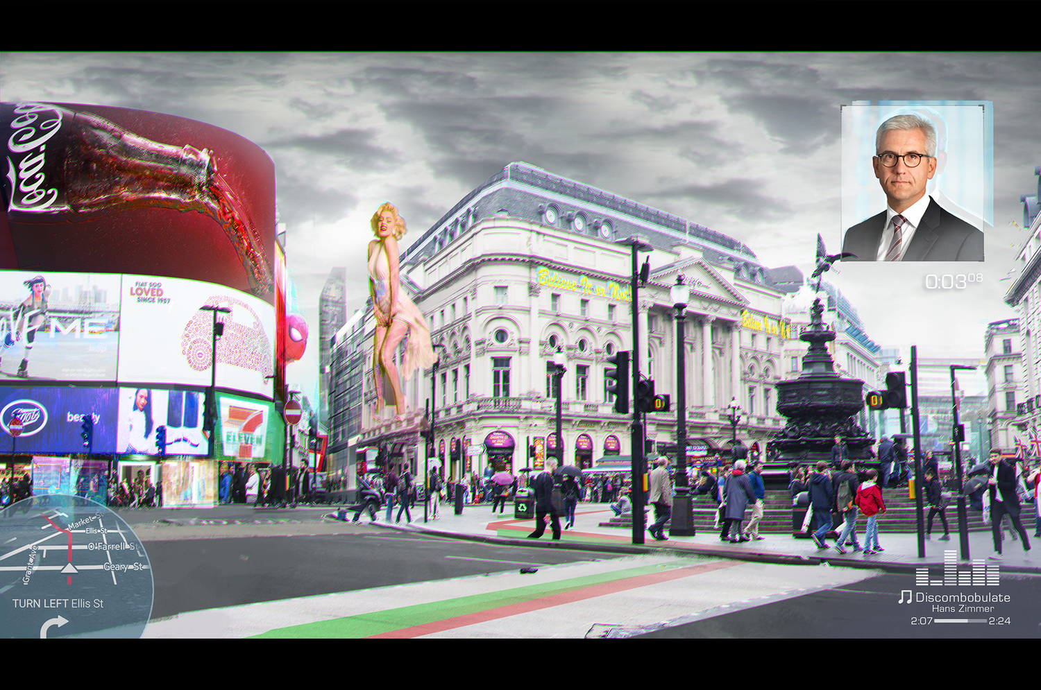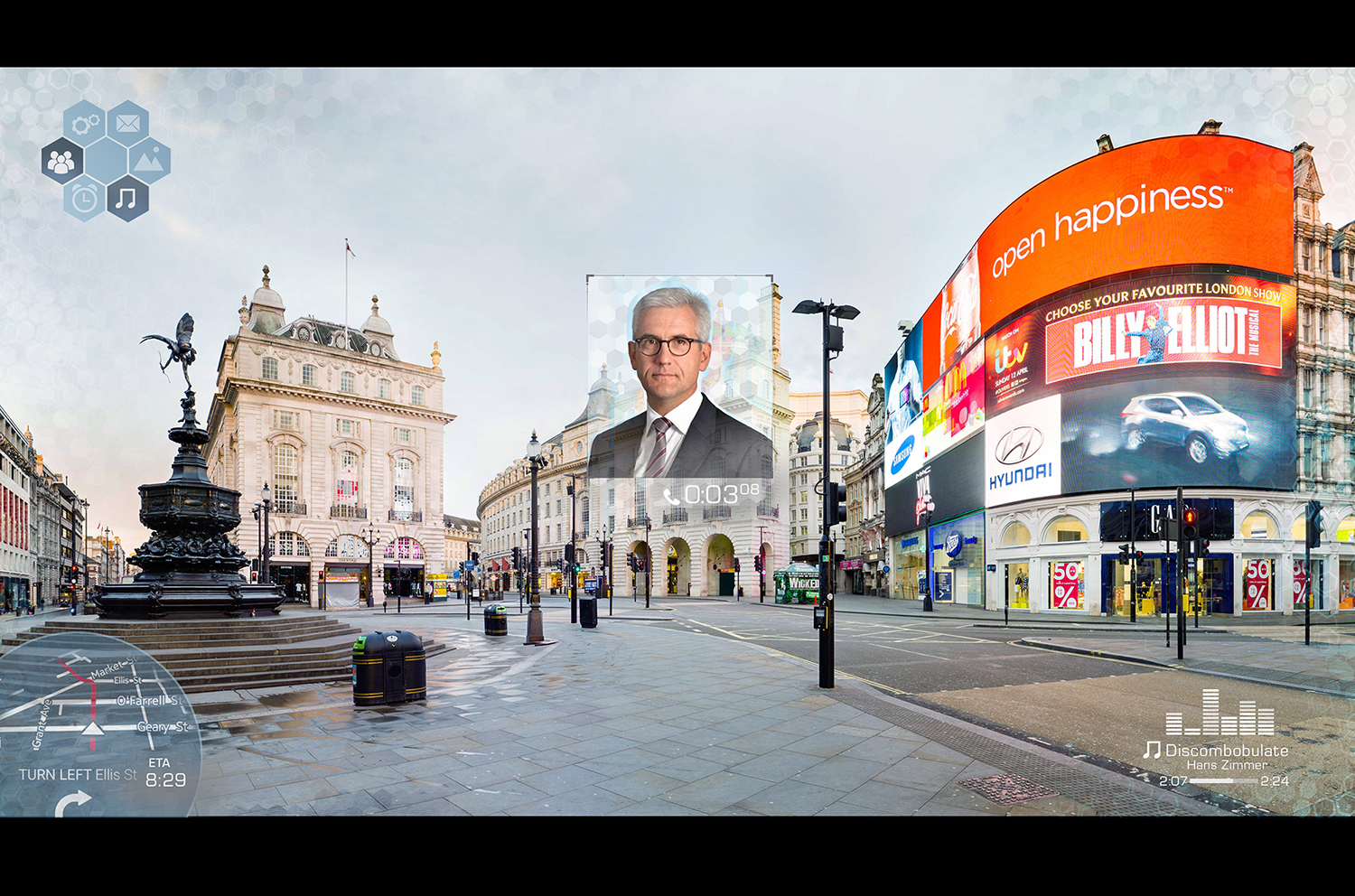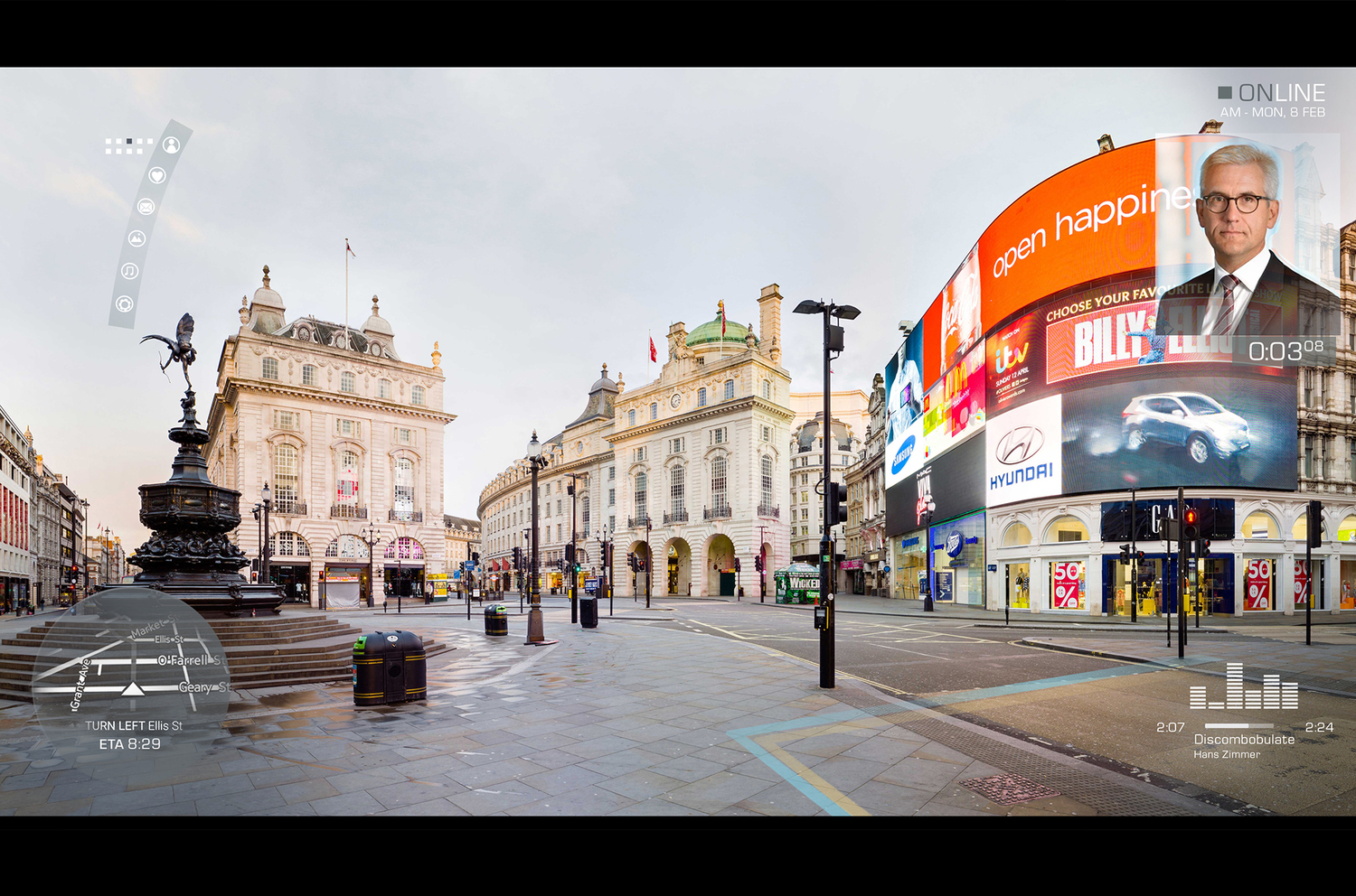 Untitled Amazon Project. Interface Design for a built-in eye implant used for everything from phone calls, listening to music and navigation. Also showcasing 3D Graphics projections used for advertising. .